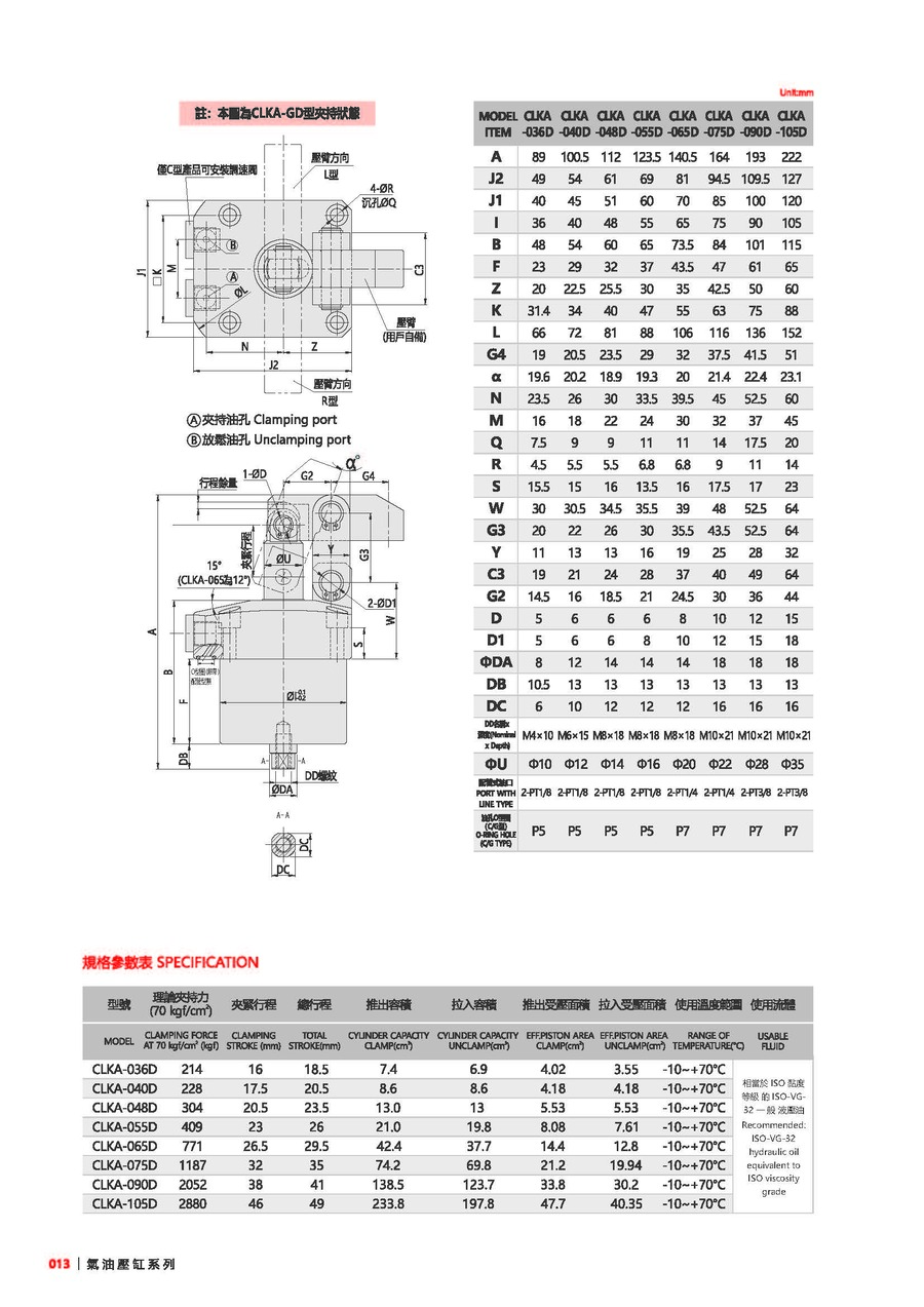 注意事項(xiàng):夾緊及放松作動(dòng)速度需適當(dāng)放緩。可接受訂制,歡迎與本公司洽詢。使用流體:相當(dāng)于ISO黏度等級(jí)的ISO-VG-32一般液壓油。
