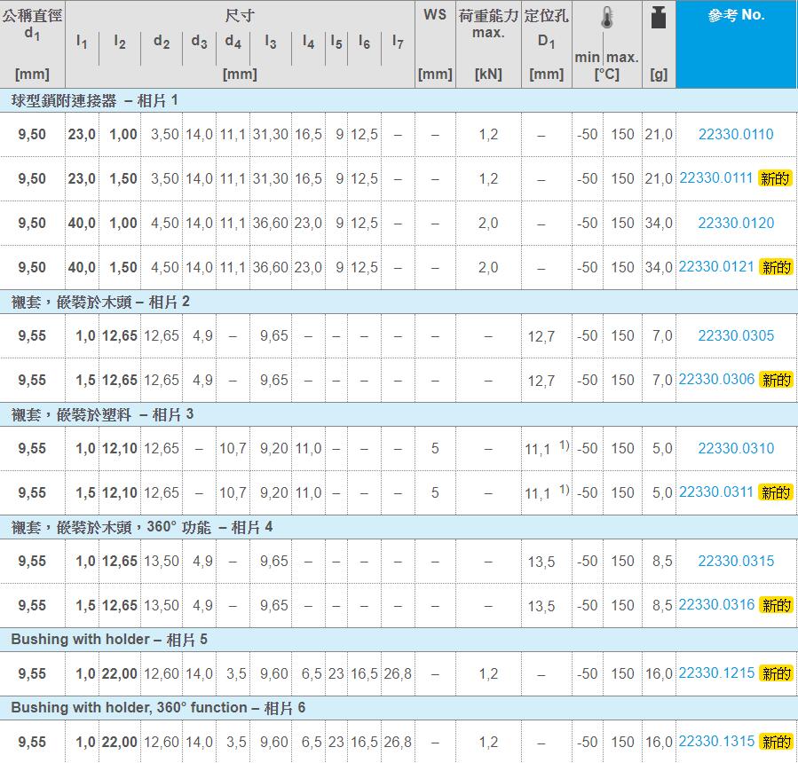 EH 22330.滾珠鎖附連接器 - 自行鎖附,帶把手(12種規(guī)格)