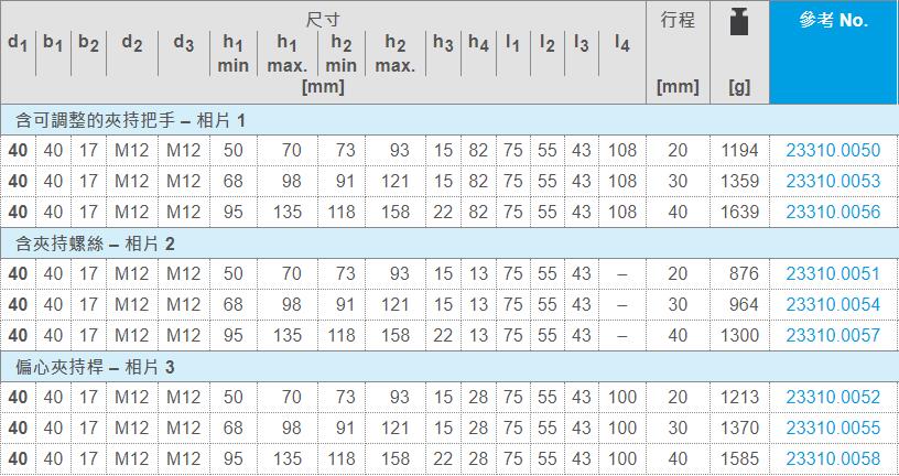 ? 借由夾持螺絲、可調(diào)節(jié)夾持把手或雙偏心夾持把手進(jìn)行快速手動(dòng)夾持