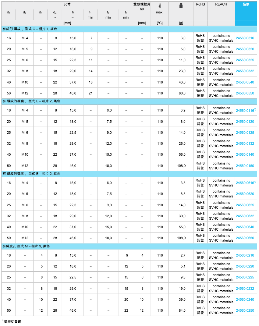 ?DIN 7708 - 熱固塑料 (PF 31),紅色 (接近色號 RAL 3003)
