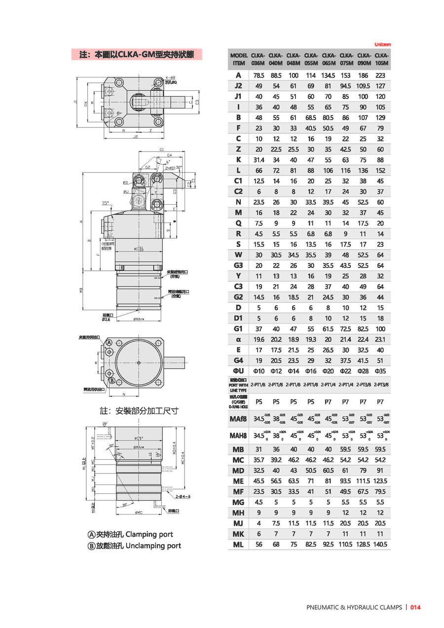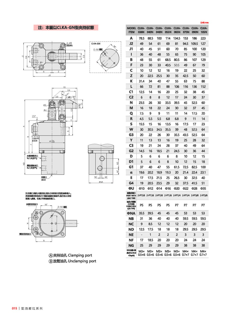 注意事項(xiàng):夾緊及放松作動(dòng)速度需適當(dāng)放緩。可接受訂制,歡迎與本公司洽詢。使用流體:相當(dāng)于ISO黏度等級(jí)的ISO-VG-32一般液壓油。