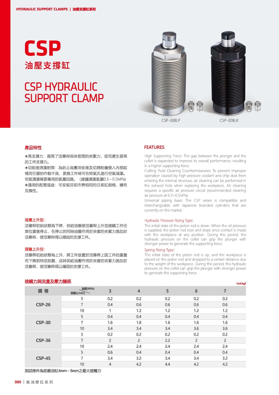 高支撐力:提高了活塞桿與夾套間的夾緊力,從而產生更高的工件支撐力。