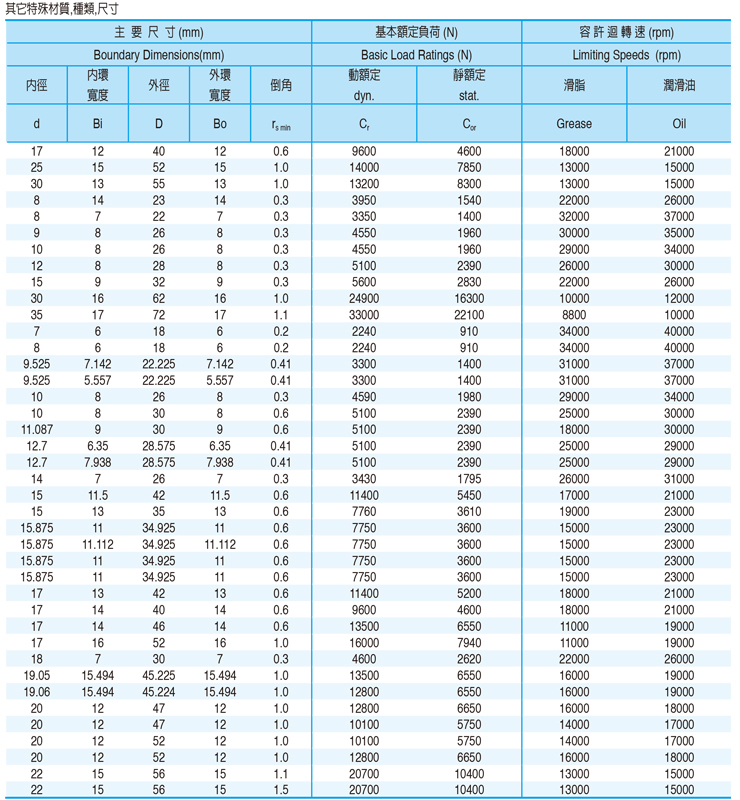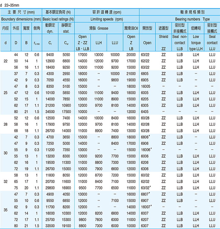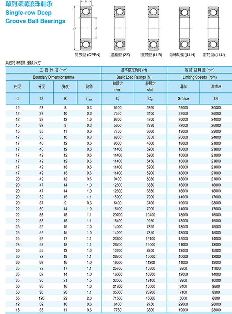單列深溝滾珠軸承