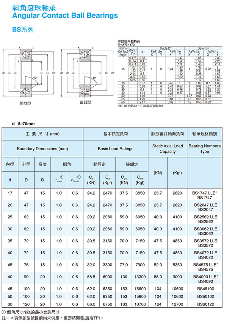 斜角滾珠軸承 BS系列