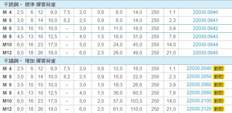 標準彈簧荷重:無標示