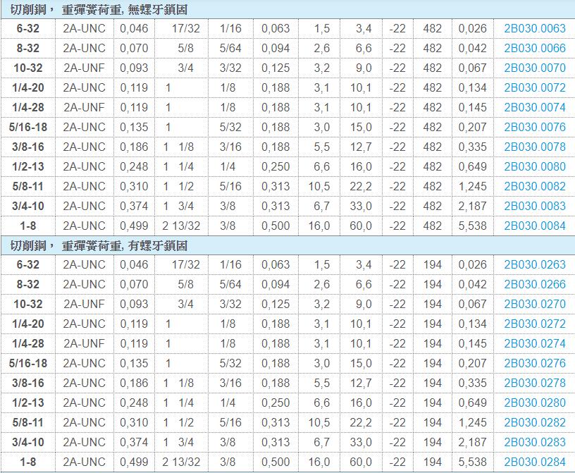 EH 2B030.帶螺栓和內(nèi)六角 - 英吋(88種規(guī)格)