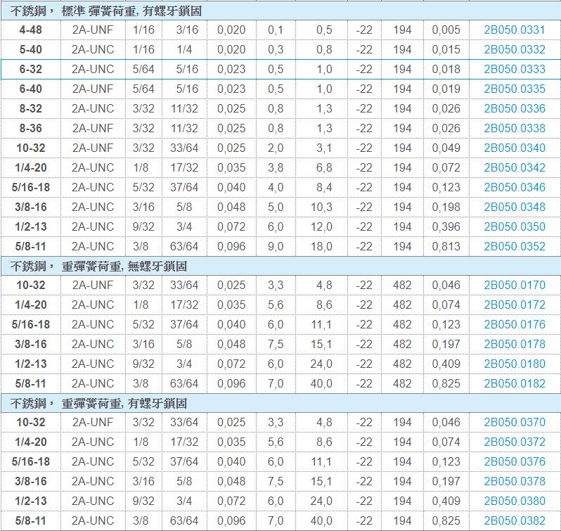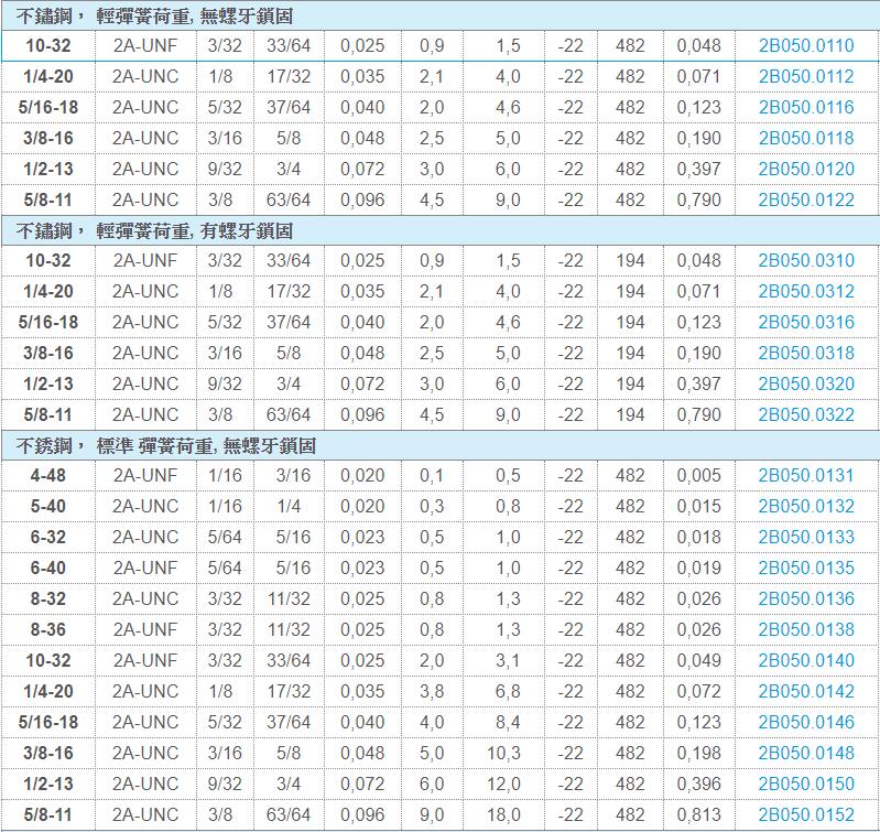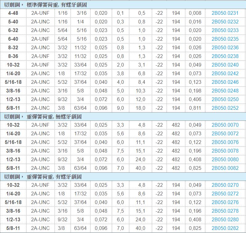 EH 2B050.帶滾珠和槽 - 英吋(96種規(guī)格)