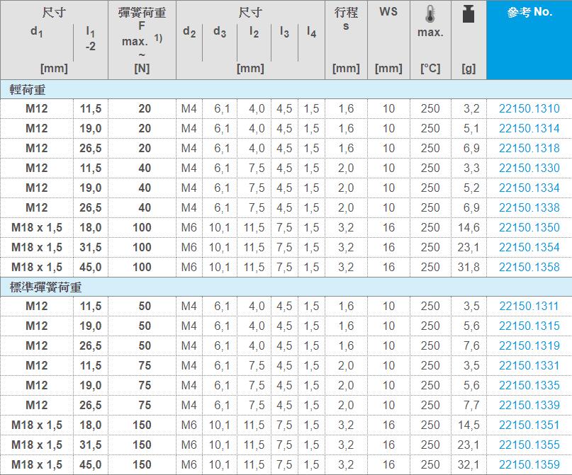 強(qiáng)化彈簧荷重 = 鋼,鍍鋅彈簧