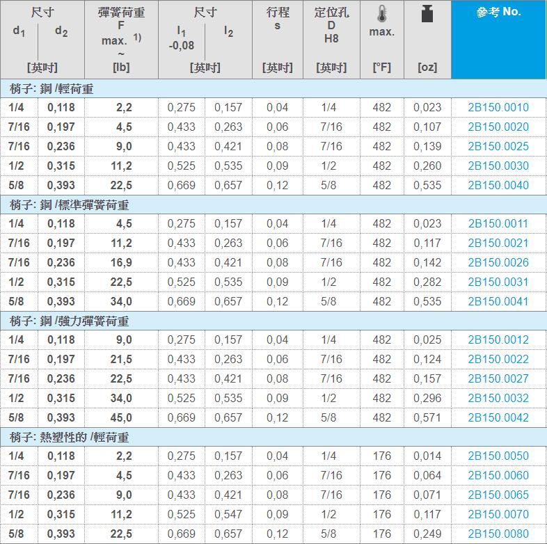 強(qiáng)化彈簧荷重 = 鋼,鍍鋅彈簧
