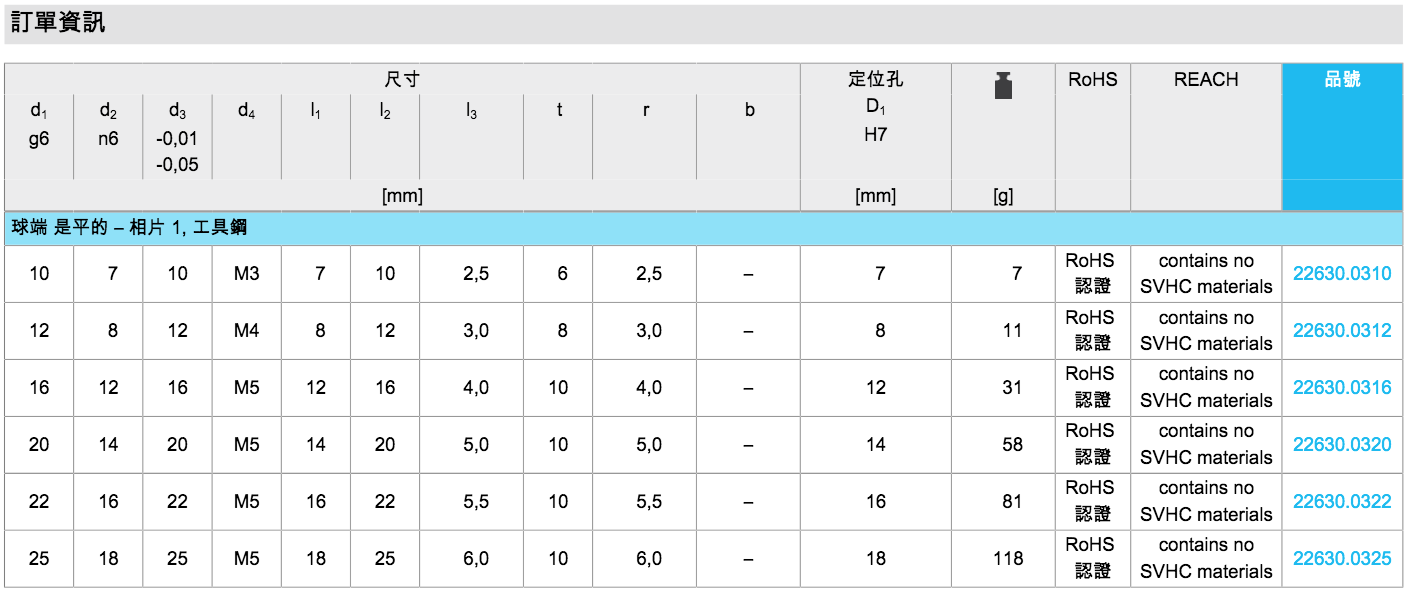 球形端圓柱梢可有助于工件的插入及避免固夾位置傾斜。