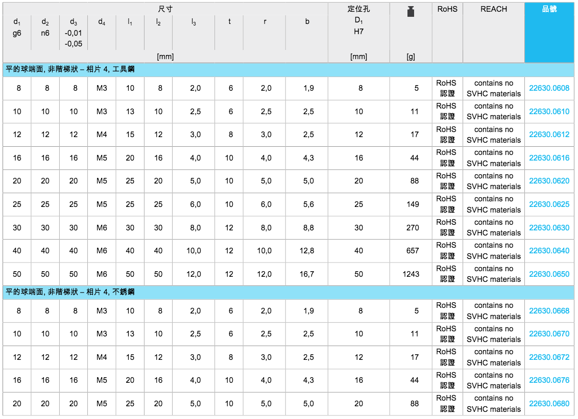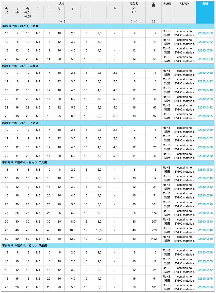 EH 22630.定位梢 有球形端(48種規(guī)格)