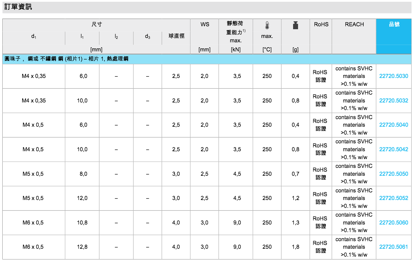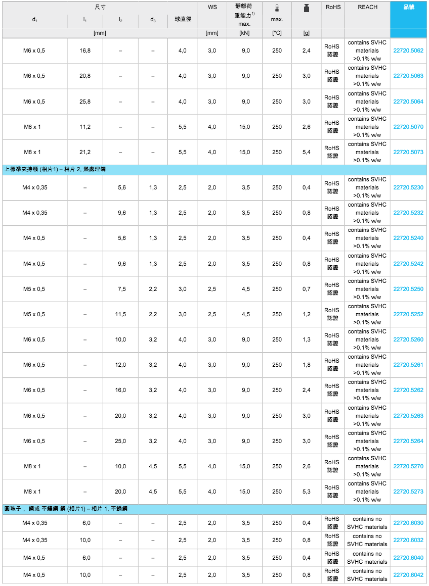 EH 22720.定位珠螺絲 無頭,附細(xì)螺紋(52種規(guī)格)