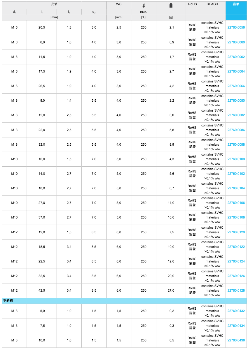 EH 22760.推力螺絲 含 銅栓(52種規(guī)格)