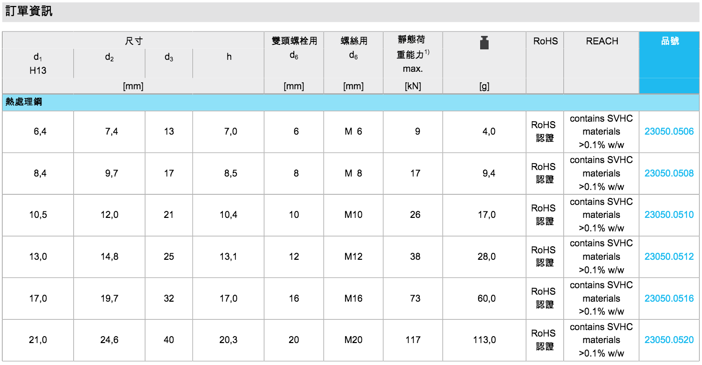 EH 23050.精實(shí)的球面華司 / 圓錐托座 類似 DIN 6319(12種規(guī)格)