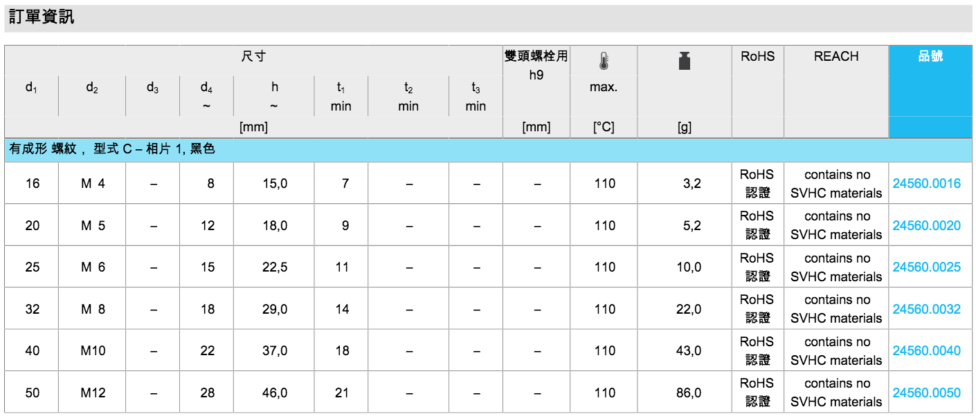 ?DIN 7708 - 熱固性塑膠 (PF 31),黑色 (接近色號 RAL 9005)