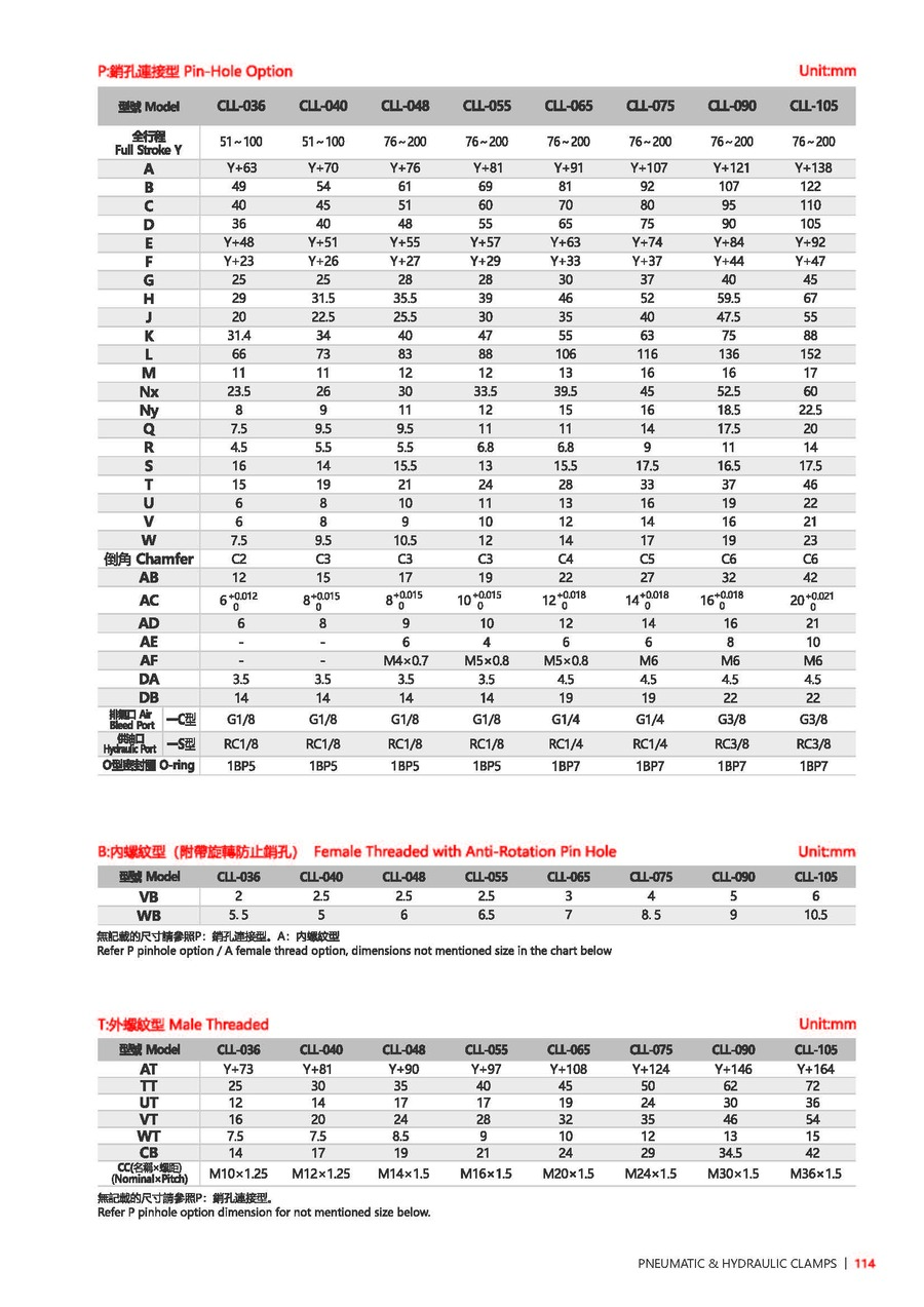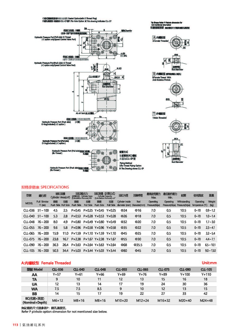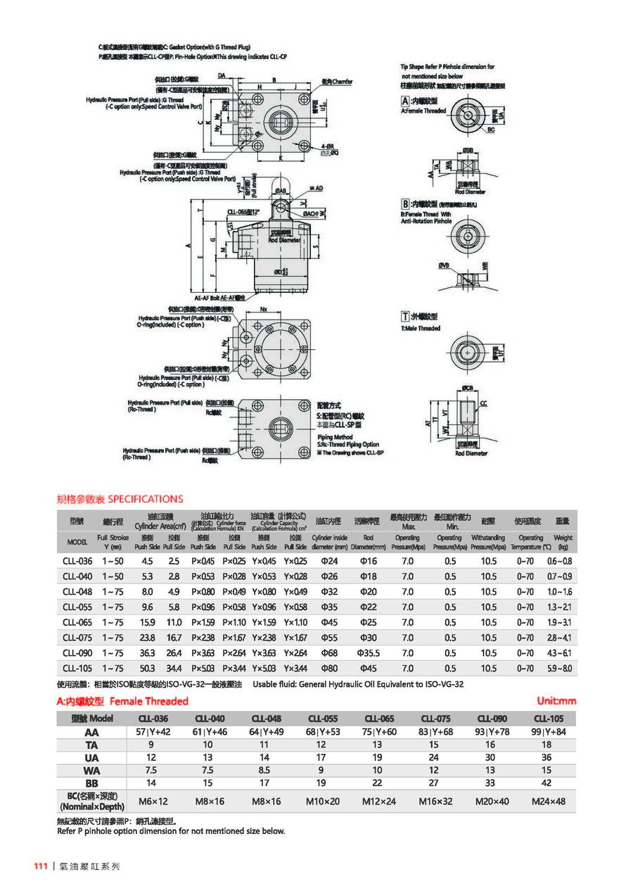 036: ?D=36, 040: ?D=40, 048: ?D=48, 055: ?D=55, 065: ?D=65, 075: ?D=75, 090: ?D=90, 105: ?D=105(注: ?D是油缸本體外徑尺寸) |