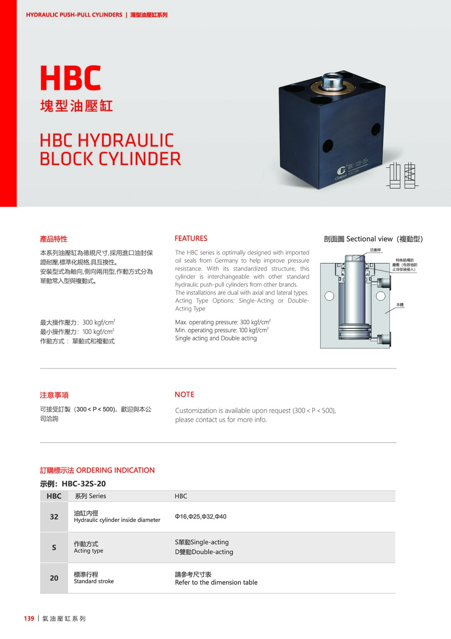 最大操作壓力:300 kgf/cm2