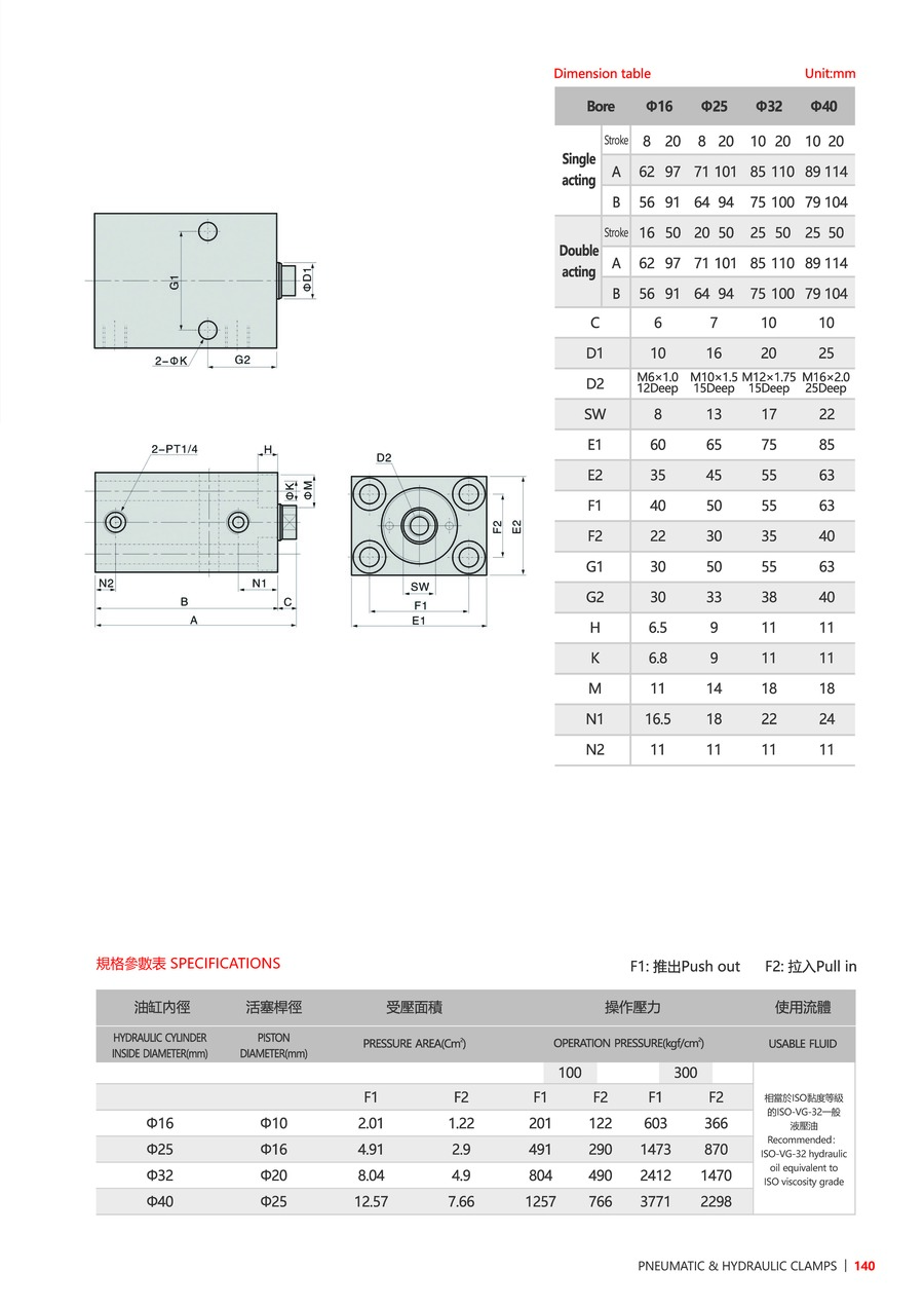 最小操作壓力:100 kgf/cm2
