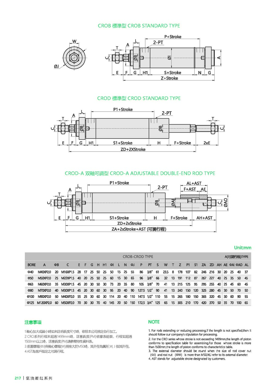 CROA: 平尾型, CROB: B型, CROC: A型, CROD: 雙軸型 |