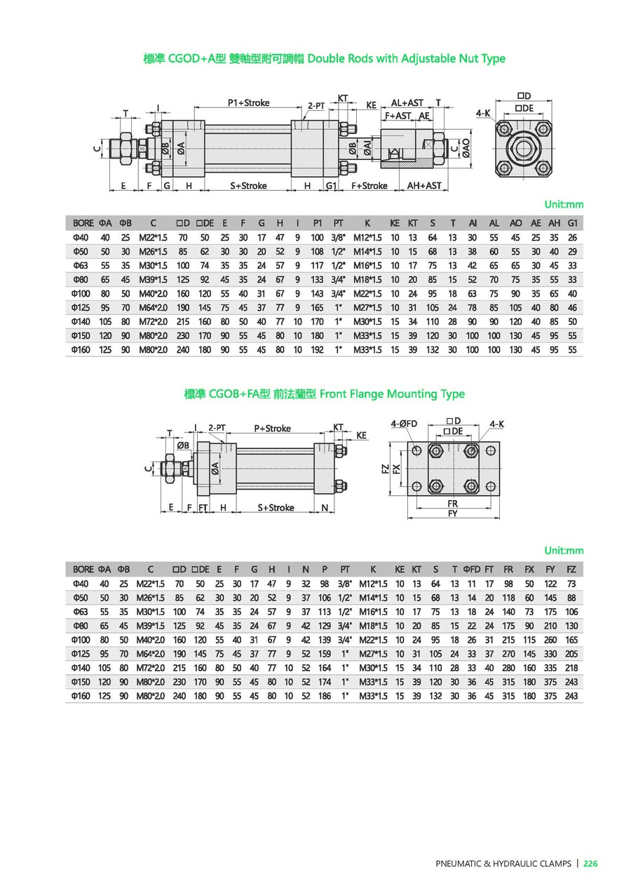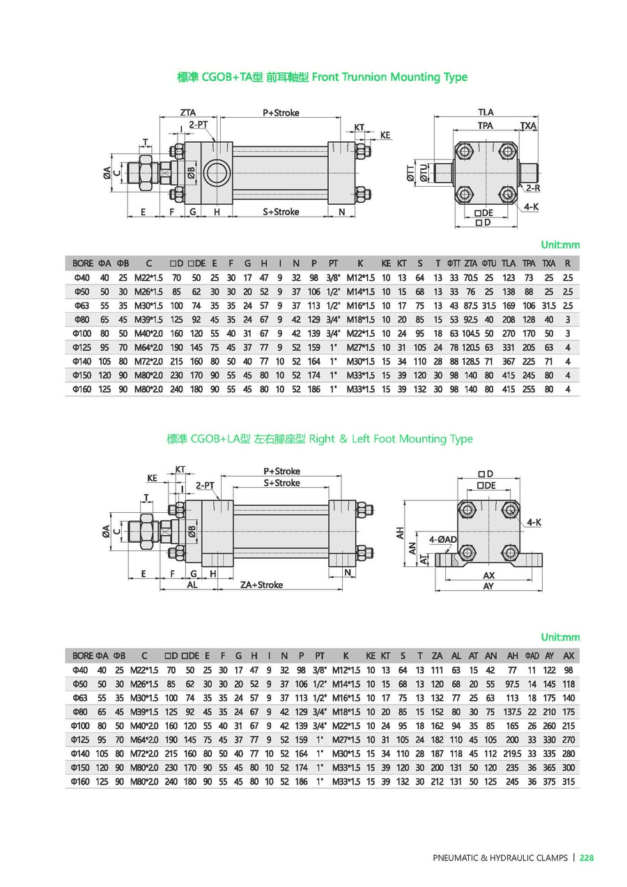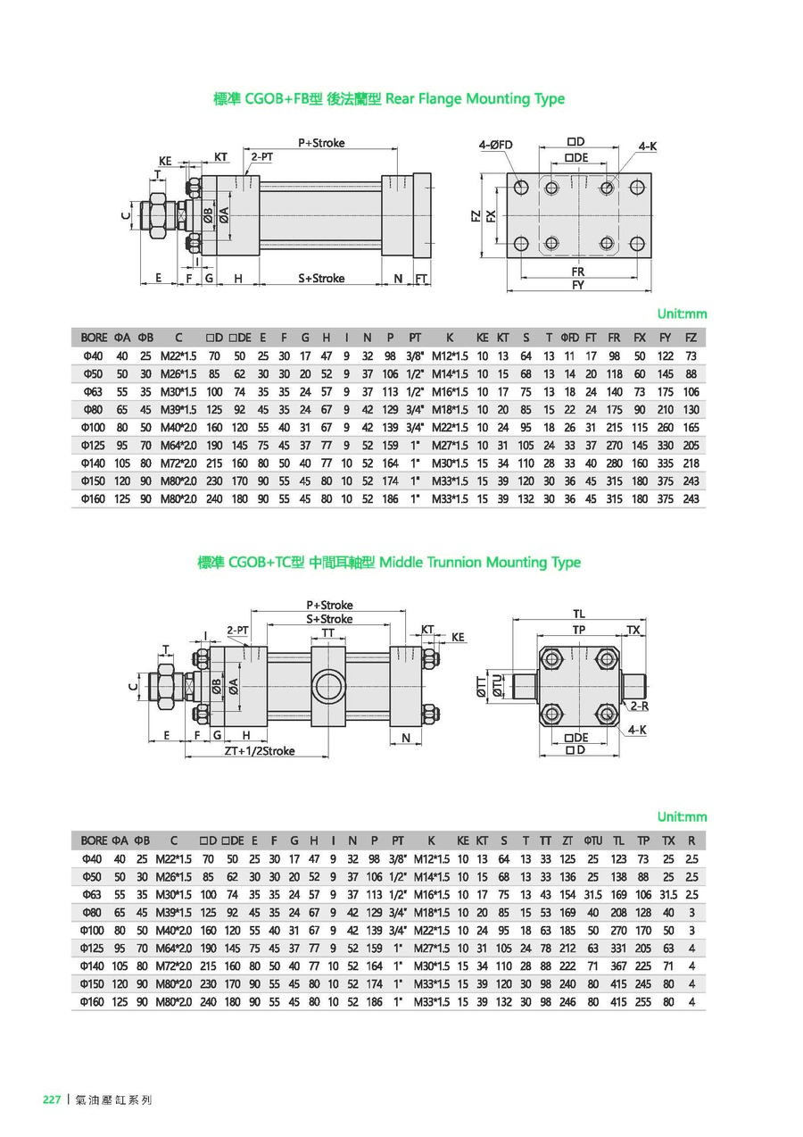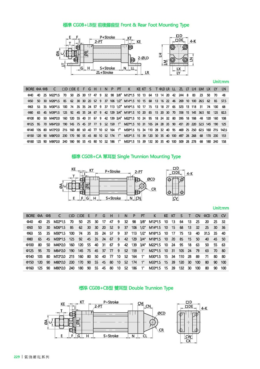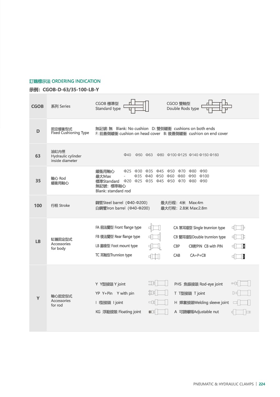 FA: 前法蘭型, FB: 后法蘭型, LB: 腳座型, TC: 耳軸型, CA: 單耳型, CB: 雙耳型, CBP: CB+Pin, CAB: CA+P+CB |